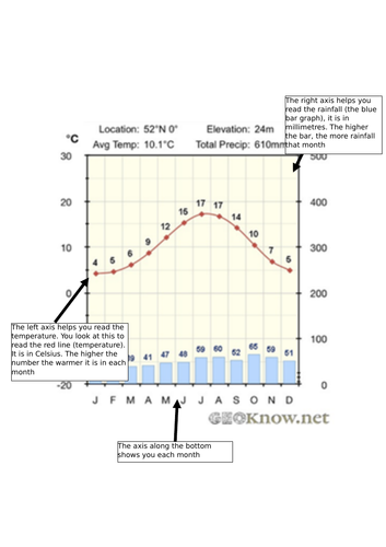 IELTS Reading - Diagram Labelling Questions - IELTS Jacky Glossary. 1. dung: the droppings or excreta of animals. 2. cowpats: droppings of cows. 5) Try to get a general understanding of the diagram before you read the text. 6) Scan for keywords in the text to locate the paragraph with the answer in then read in detail to identify the words or words needed for the label. PDF 013368718X CH04 047-066 - Weebly In the box below, draw and label a diagram showing how a coastal mountain range can affect a region's climate. Use the graph to answer Questions 6-9. 6. Complete the climate diagram by adding labels to the bottom and both sides of the graph to show what the variables are. 7. Describe what a climate diagram summarizes. 8. Climate graphs - Graph skills - GCSE Geography Revision - BBC Climate graphs are a combination of a bar graph and a line graph. Temperature is shown on a line graph, with the figures being shown on the right side of the graph. ... Add each month's total ...
