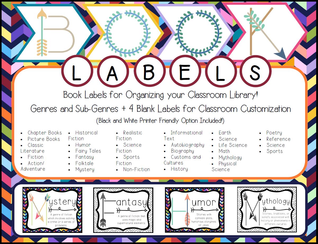 7 Best Genre labels ideas | classroom library, library organization ... Genre Library Class Books FREE Genre Labels for Your Classroom Library. This FREE document was designed to compliment my 43 page TEACHING GENRE KIT (which is available in my TPT store). It includes labels for your classroom library and features clipart by Thistlegirl Designs.
