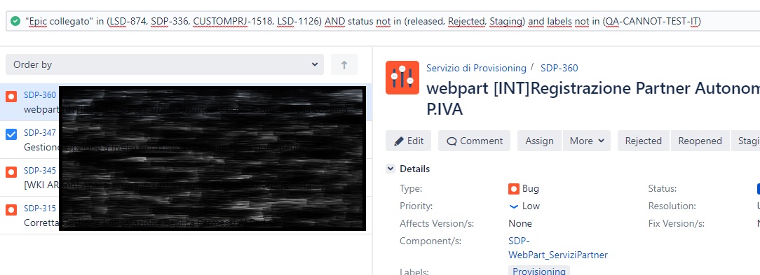 Jira search labels not in. how do I find all issues NOT having a particular label? This fails also: (status = Testing) AND labels not in (BeingTestedByCustomer) For reference, please note the results of these related searches: (status = Testing) AND (labels = BeingTestedByCustomer) finds 2 issues (status = Testing) AND labels in (BeingTestedByCustomer) finds the same 2 issues (status = Testing) finds 49 issues Watch Searching for issues with a specific label - Atlassian Community I'm struggling with a JQL query that will bring back issues with a specific label, even if there are other labels on the issue. "project in (UKSCR, COMPRG) AND issuetype = Bug AND labels = BAT". don't work because they both bring back issues with ONLY the label "BAT". If the issue has "BAT" in addition to other labels it doesn't get returned. How to filter for "labels does not contain X" in JIRA/JQL? - Super User Feb 8, 2016 ... There is a post on here which suggests using the following: status in("open","reopened","inprogress") and (labels not in("OnHold") or labels ... Why my JQL search with "not in" or "!=" (not equals) operators has ... When performing a JQL search for issues not in a category or without a label, for example, using the "not in" or "!=" (not equals) operators, some are left out. Cause Some fields in Jira are actually relationships. When we tell JQL something like: assignee not in ("user1","user2")