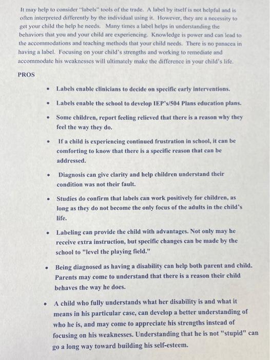 The Pros and Cons of Educational Labels - NWEF Kids with negative labels are more likely to be pitied rather than helped, even by their parents. Low expectations never helped anyone, much less a child who is ready and excited to learn. Just because that child has challenges doesn't prevent him or her from overcoming them just like anyone else.